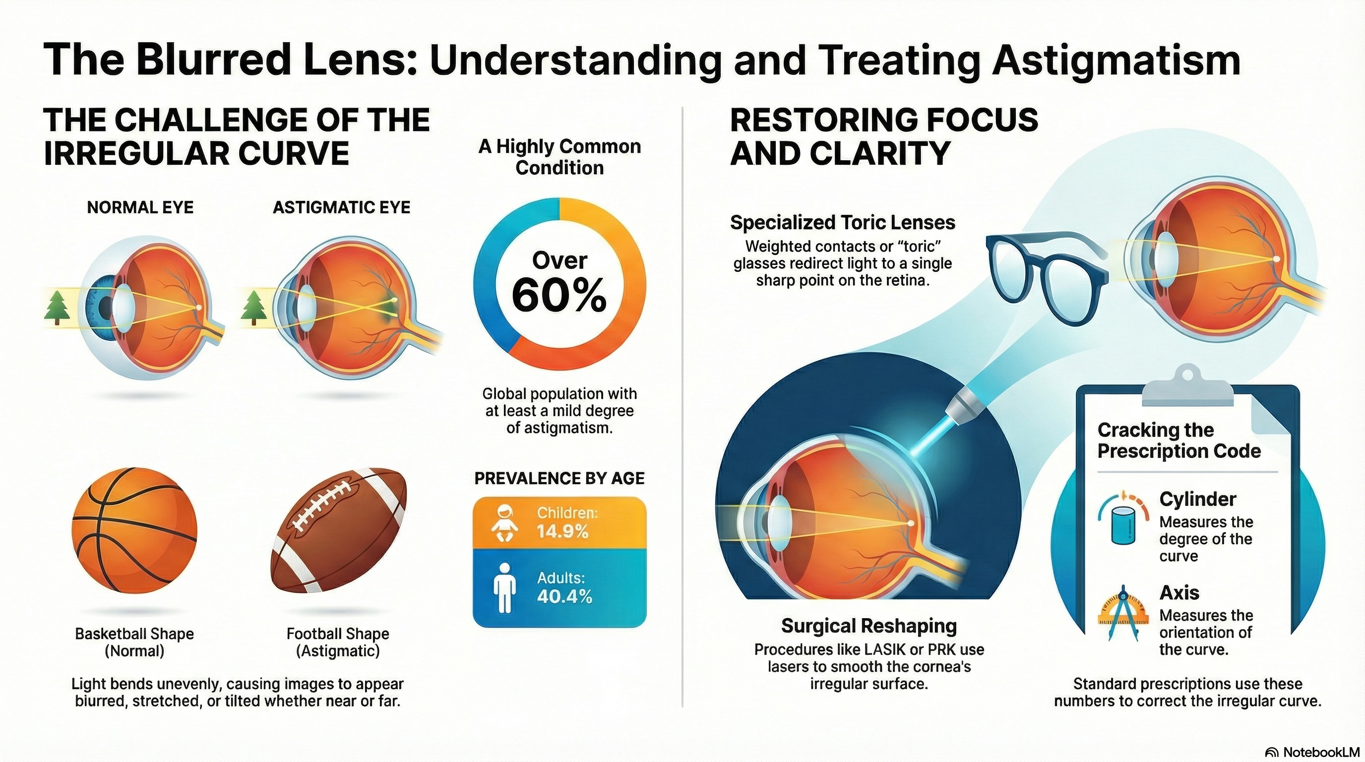Astigmatism is a very common eye condition known as a "refractive error." In a perfectly shaped eye, the cornea (the clear front window) and the lens are curved evenly in all directions, like a basketball. This allows light to focus precisely on a single point on the retina at the back of the eye.