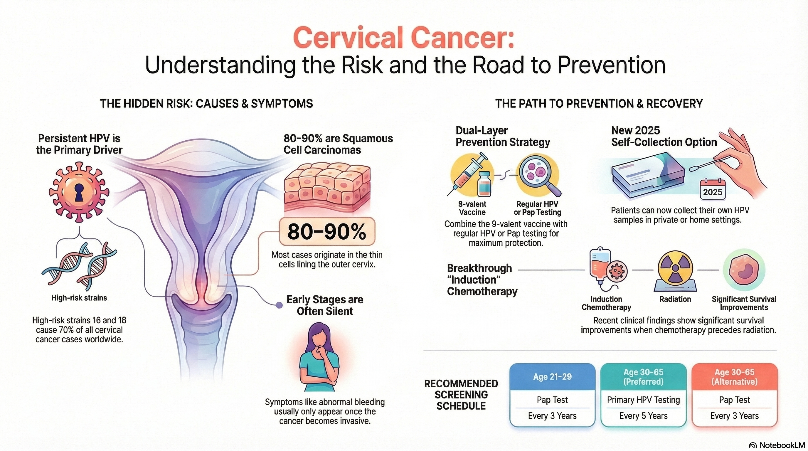 Cervical cancer is one of the most preventable cancers thanks to a "dual-layer" approach of vaccination and screening.